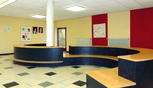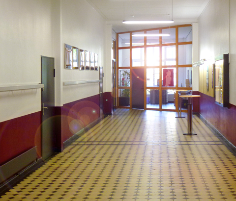 Für unsere jüngeren Schüler:innen war das Gebäude gut überschaubar und hatte einen familiären Charakter. Die Vielzahl der zum Teil frisch renovierten Räume mit zahlreichen Sitzgelegenheiten und Spielecken, Stillarbeits-, Ruhe- und Essbereichen, einer Schülerbibliothek und einem großen Foyer mit Kiosk und Bühne bot lange Jahre gute Möglichkeiten für Unterricht, Projekte und nicht zuletzt unser Ganztagsangebot.
