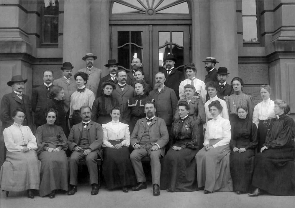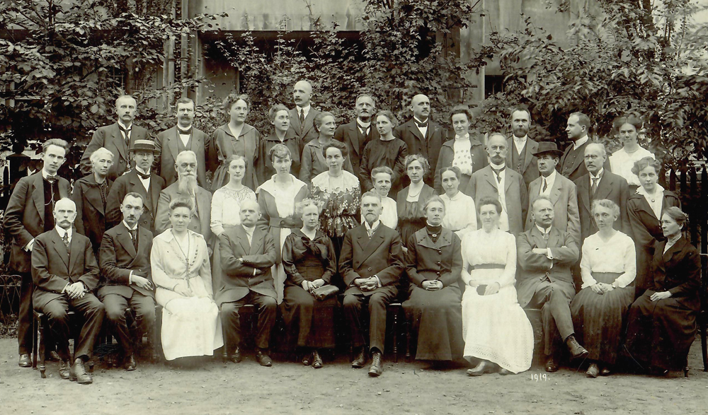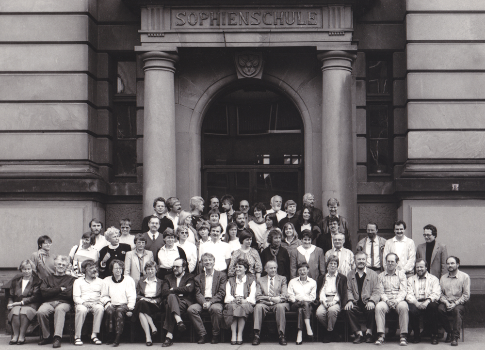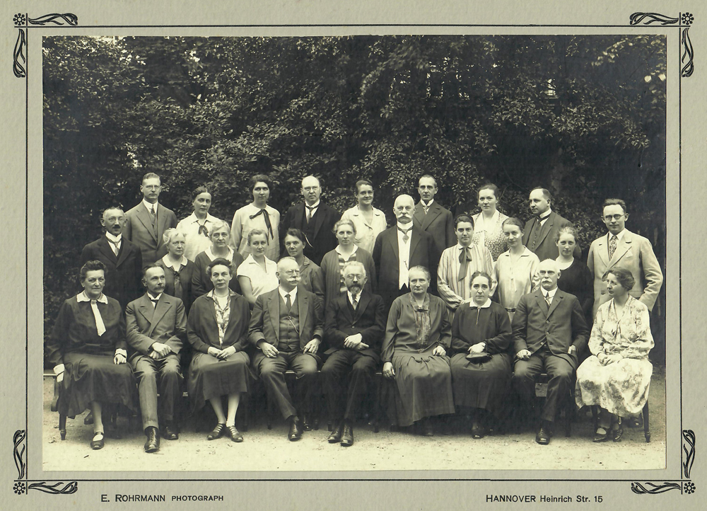 Das Hauptgebäude in der Seelhorststraße 8 wurde 1898 von dem Architekten und Stadtbauinspektor Paul Rowald entworfen und am 24. April 1900 feierlich eingeweiht. Gestaltungselemente der Renaissance und des Barocks prägen den schön erhaltenen klassizistischen Bau in der markanten Sandsteinfarbe, die wir in unserem Schul-Logo aufgegriffen haben und als Erinnerung bewahren. Gut 120 Jahre lang wurde hier gymnasial unterrichtet – und die längste Zeit davon gab es nur Schülerinnen! Die Kollegiumsfotos auf dieser Seite stehen stellvertretend dafür, wie sich Schule in diesem Zeitraum gewandelt hat.