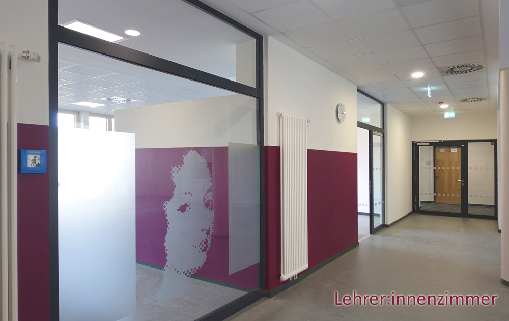 Zuletzt bekam die alte Sophie einen frischen Innenanstrich mit vielen Akzenten in Bordeaux, die sich auch im Neubau wiederfinden. Dem Platzbedarf von weit über 1000 Schüler:innen konnte der Ursprungsbau jedoch nicht mehr gerecht werden, zumal die Klassenräume insgesamt zu klein und nicht erweiterbar sind und der Raum um das Gebäude zu begrenzt ist. Die Aula fasste auch nach einer Modernisierung nur 300 Personen.